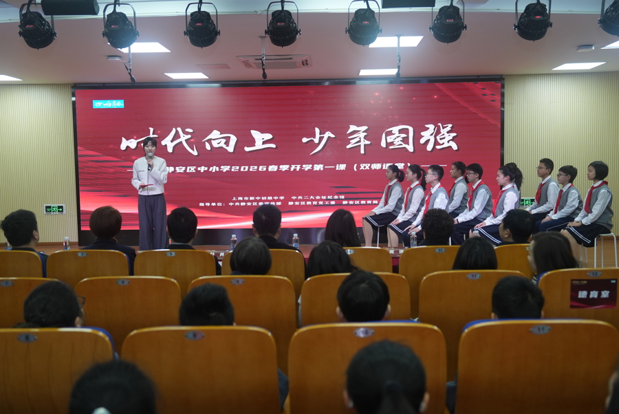 3月2日,以“时代向上 少年图强”为主题的静安区中小学2026春季“开学第一课”在上海市新中初级中学开讲。这是静安区深化“大思政课”建设的又一创新实践,也是“理‘响’青春”党的创新理论学习宣讲活动的首场亮相。